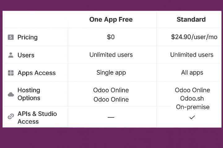 | One App Free | 0 | 0 | Odoo Online | Single app unlimited users |