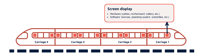 From that foundation, we structured product categories to represent the full hierarchy of transit assets, moving from high level routes down to each individual passenger display.